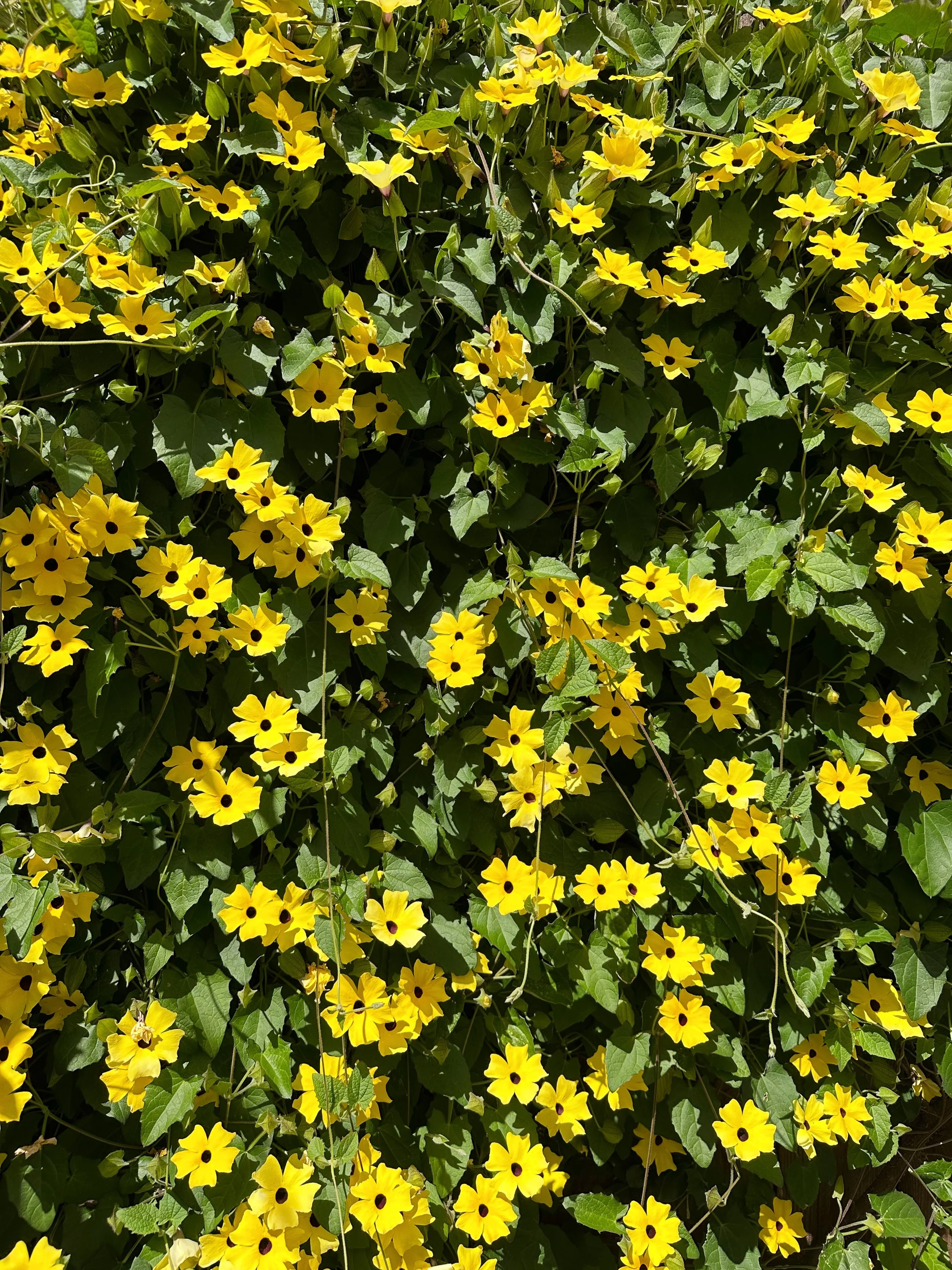 It was from within this emotional hole that I made the decision to get in my car one morning and drive to the local nursery. I’d been cloudy-headed and heavy-hearted for months, but on this morning, I was focused and one-track minded. At the nursery, I walked straight to the outdoor vines section, past the star jasmine and morning glories, and found what my heart desired: a small yellow black-eyed susan vine.